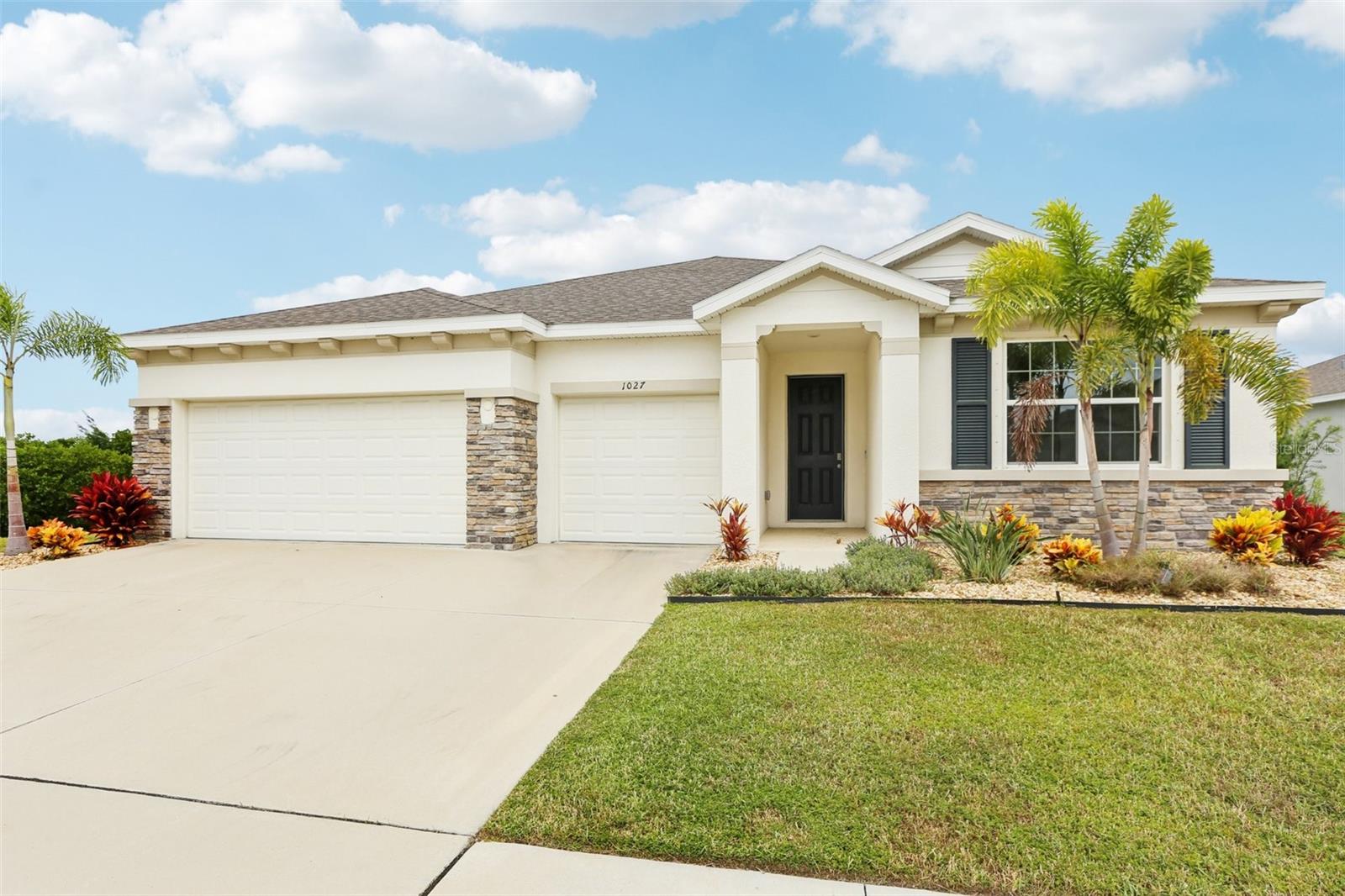 Discover this stunning 4-bedroom, 3.5-bathroom waterfront home in the desirable Shell Cove community of Ruskin. From the moment you arrive, you'll be greeted by mature landscaping and the impressive oversized 3-car garage. Step inside to an elegant, open-concept design featuring tall ceilings and ceramic tile throughout. The spacious kitchen and family room combination is perfect for entertaining, anchored by a huge island/breakfast bar, sleek dark wood cabinetry, and stainless steel appliances. A bright dinette area sits conveniently adjacent to the kitchen. The large 3-panel sliders in the main living area perfectly frame the peaceful pond views out back, bringing the serene waterfront setting into your home. The home also includes a versatile bonus room and a large, central laundry room. The thoughtful split-bedroom layout offers exceptional privacy. The primary suite is a true retreat with an en suite bathroom and a large walk-in closet. A rare find, the second bedroom also features its own en suite bathroom and walk-in closet, making it an ideal guest or in-law suite. The additional bedrooms are generously sized. Community Amenities: Enjoy the best of community living with a fantastic array of amenities, including a Clubhouse, sparkling Pool, Playground, and Dog Park. The neighborhood features Sidewalks for pleasant strolls, a convenient Community Mailbox center, and is secured by Deed Restrictions. This home is an absolute must-see for those seeking waterfront living, luxury amenities, and a vibrant community lifestyle!