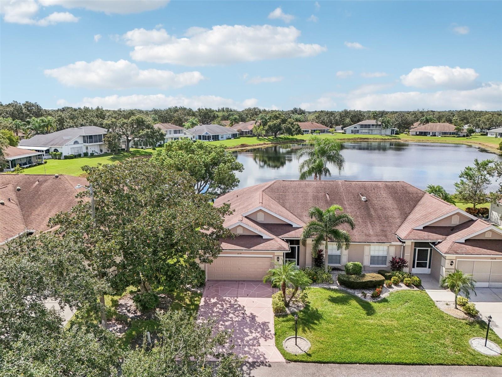 Experience waterfront living at its finest in this beautifully furnished 2-bedroom, 2-bath condo in the sought-after Kings Point community of Sun City Center! This well-maintained home offers the perfect blend of comfort, style, and stunning views. A designer driveway and mature landscaping create a warm and inviting curb appeal. Step inside to a bright, open layout with high ceilings and gorgeous laminate flooring throughout the main living areas. The spacious living room, dining area, family room, and enclosed lanai feature three-pane sliding doors that showcase breathtaking water views and fill the space with natural light. Enjoy casual meals in the separate dinette area, conveniently located next to the indoor laundry. The kitchen is a chef's delight, with stone countertops, a breakfast bar, abundant cabinet space, and a separate pantry for extra storage. The primary suite is a tranquil retreat with water views, a large walk-in shower, and private en suite bath. The second bedroom is generously sized and located near the guest bathroom, offering comfort and privacy for visitors. You'll love the gated community of Kings Point, which has amazing facilities, pools, clubs and events just waiting for you to enjoy. Located between Sarasota and Tampa, this home is perfectly positioned for a convenient ride to airports, great shopping, dining, and professional entertainment. With easy access to award-winning, sandy beaches, you'll experience the best of all worlds--without the stress of big city life. Leave the hustle behind and embrace a new chapter in Sun City Center, Florida, the state's top-ranked and most affordable 55+ retirement community. Don't miss this opportunity to own a waterfront gem--just bring your suitcase and start living the Florida lifestyle!