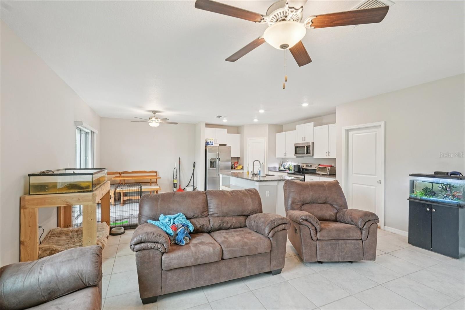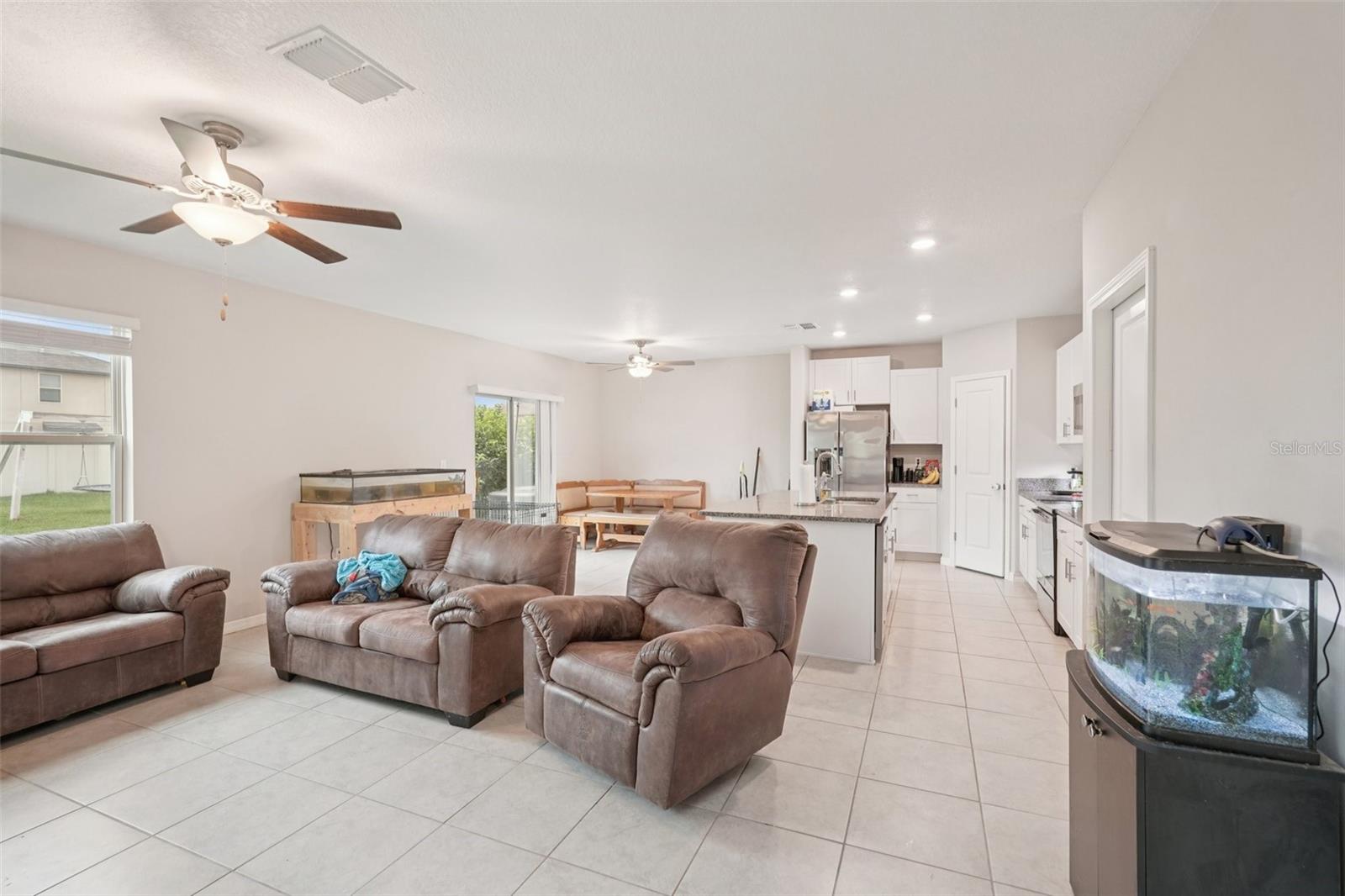 Welcome to this spacious 4-bedroom, 2.5-bath home located in the desirable Cypress Mill community! This two-story gem offers a functional and open layout featuring a large kitchen island overlooking the living and dining areas, perfect for entertaining. Enjoy seamless indoor-outdoor living with a sliding glass door leading to a fully fenced backyard. The kitchen is equipped with stainless steel appliances and a walk-in pantry for extra storage. All bedrooms are located upstairs, along with a loft space ideal for a home office or play area. The generously sized primary suite includes a private en suite bathroom with dual sinks, a large walk-in shower, private water closet, and a walk-in closet. The inside utility room is conveniently located upstairs as well. Secondary bedrooms share a full bath, and a half bath is located on the main floor for guests. Additional highlights include a 2-car garage, carpeted bedrooms, and a large fenced backyard--great for pets or play. Don't miss this beautiful home in a growing and convenient area!